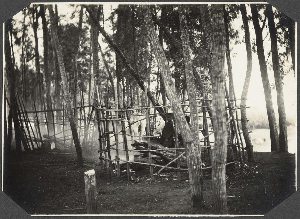| 記載事項など | 台紙上書「カラフトポロナイ河上流ホーエ部落(ギリキク)」、裏書「柵ヲ結ビタル飼主ガソノ柵内ニテ焚火ヲシテ烟ヲ出シ蚊ヲ駆除スルタメナリトナカイハ其附近ニ集リテ蚊ノ襲撃ヲ避クルモノナリ」。 |